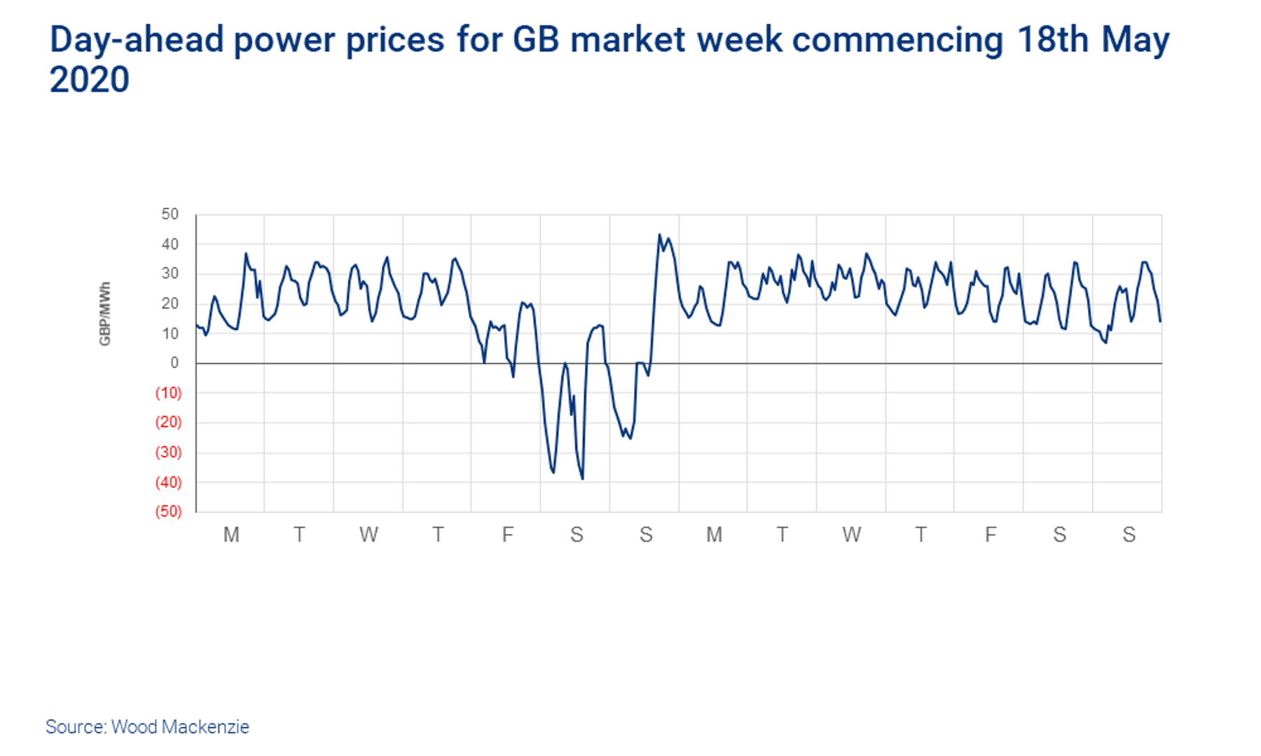 This comes from a fascinating note by Rory McCarthy and Victor Laurent of Wood Mackenzie Genscape. It has long been clear in principle that increasing the proportion of wind and solar power on the grid creates challenges for balancing, but now there are some examples emerging of it being a significant issue in practice. This chart shows day-ahead power prices in the market for Great Britain, starting on May 18 of this year. You can see that on the weekend of 23-24 May, with a holiday on Monday, the country in lockdown and abundant wind and solar generation, prices were negative for a while. In fact, it was the first average negative day-ahead price on record; a clear sign that there is not enough flexibility in the system. The cost of balancing the grid also shot up over that weekend. The ideal solution would be to use periods of excess supply to charge up storage, so the power can be used later. But McCarthy and Laurent ask whether “European power markets need a complete rehaul in order to deliver this new breed of system flexibility”.