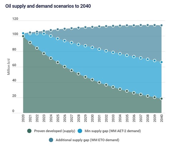 This comes from a fascinating report on the future of exploration for oil and gas, by Wood Mackenzie’s Andrew Latham and Adam Wilson. There is considerable uncertainty about the outlook for demand for oil and gas, but in any plausible scenario, it is clear that over the next two decades and beyond there will be a significant gap between global consumption and production from fields that are already on stream. The “supply gap” created in that way could be 460 billion barrels of oil equivalent by 2040, even in a world that is on course to limit the rise in global temperatures to 2°C.