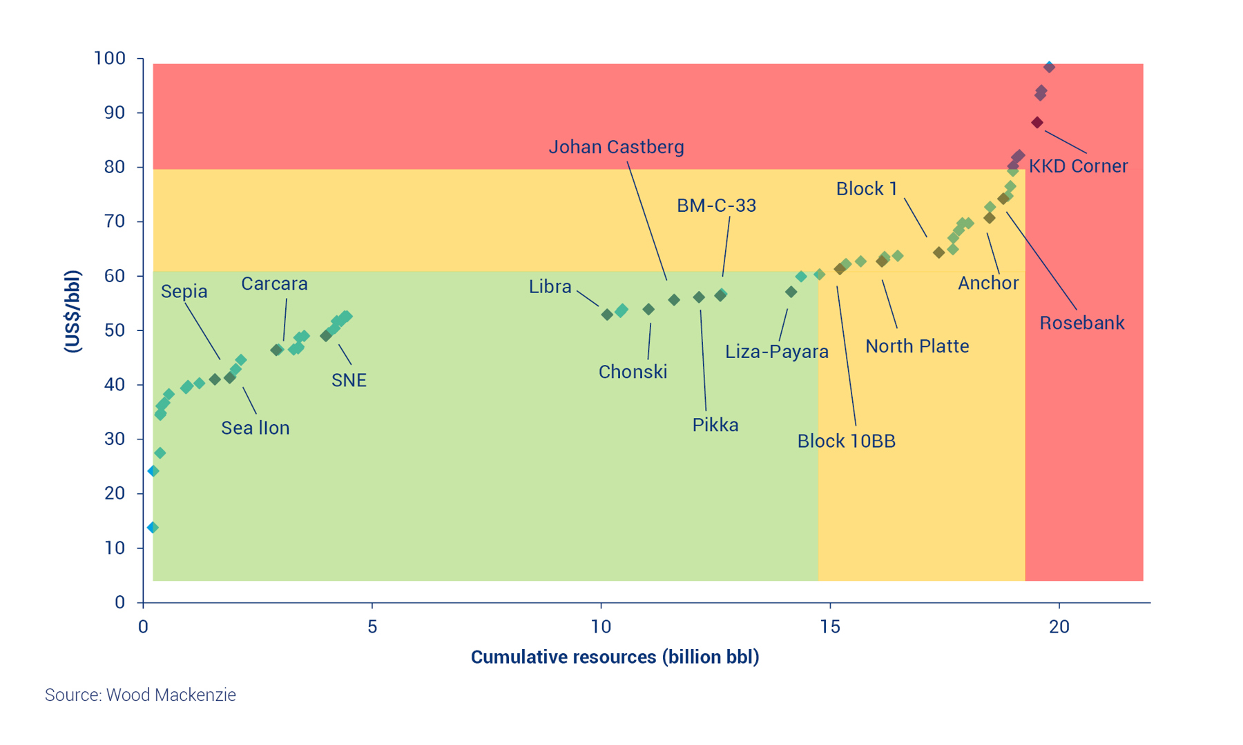Other stats are more sobering. The average breakeven Brent price for these projects is US$65/bbl (15% IRR), even after a 20% global reduction in costs since 2014. An average of 15 years has passed since the first discovery on projects sitting in the hopper. The glacial pace towards commercialisation hints at inherent problems.