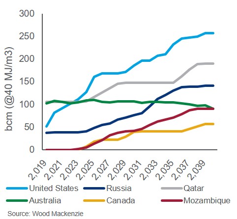 Investors are scrambling to grab a piece of the action. We are witnessing a supply boom the scale of which the industry has never experienced before. Around US$240 billion will be spent between 2019 and 2025 on greenfield and brownfield LNG supply projects, backfill and finishing construction for those already underway.