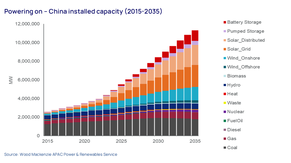By increasing its wind and solar installations to 3,600 GW by 2035, China is continuing its push to decarbonise. Domestic power sector carbon emissions likely peaked in 2024 and will keep falling. But this higher target for wind and solar should be comfortably achieved. Last year, China reached its 2030 target of 1,200 GW of installed wind and solar capacity and WoodMac expects the new target will be comfortably exceeded.