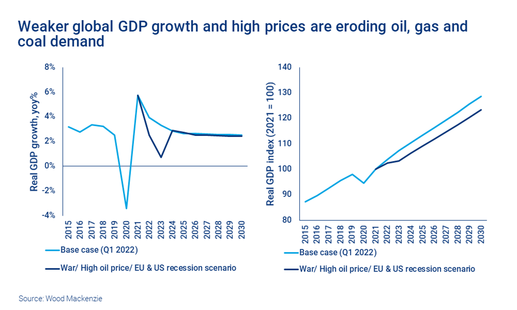 The constant, 24/7 images of the war serve as a window for us all to witness the tragic devastation being wreaked upon Ukraine and its people. It’s clear the economic fall-out from Ukraine will be felt much more widely: in Russia, reeling from sanctions; across a global economy still recovering from the Covid-19 crisis; and in energy markets where commodity prices have hit the roof. Our chief economist, Peter Martin, shares his thoughts on the deteriorating outlook for the global economy while our team of analysts give their latest views on how it’s affecting oil, gas and coal demand.