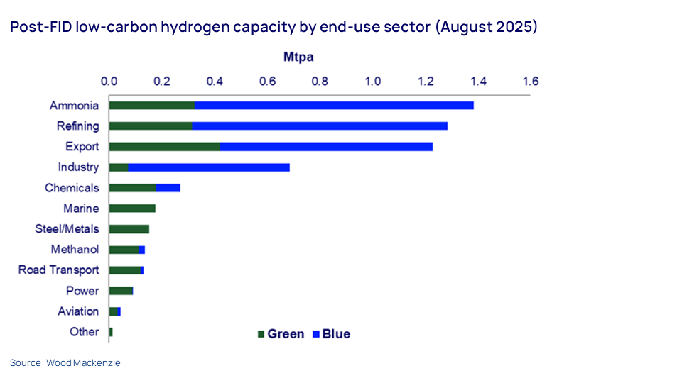Elsewhere, India has set a production of 5 Mtpa by 2030 with over 50% allocated for exports, including into Europe. Competitive renewable power prices and a flurry of government initiatives are attracting both local and foreign investors.