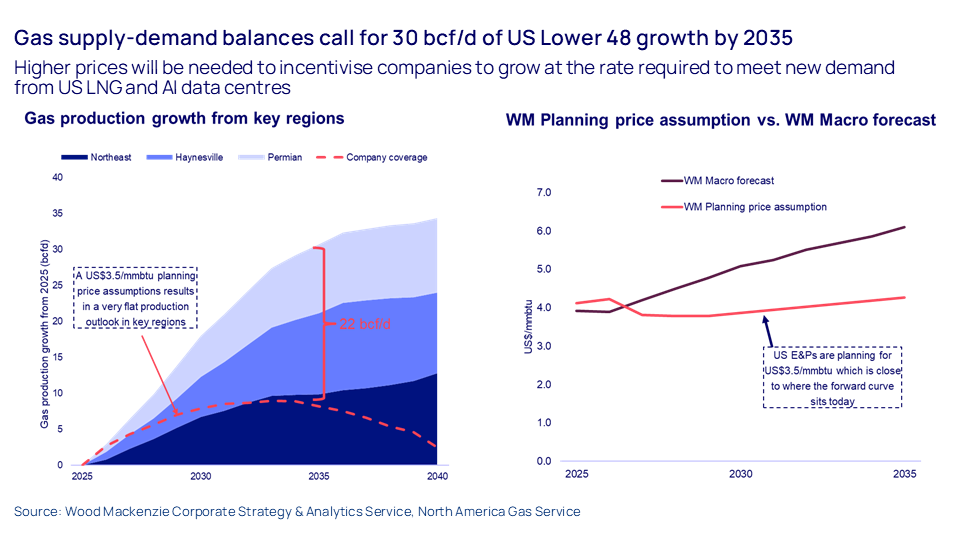 There’s plenty of gas resource, it just depends on operators’ willingness to invest and on the cost of bringing the gas to market. Gas producers near term are adhering to capital discipline, spooked by the potential impact of US trade tariffs on steel, fluids, chemicals and cement so are keeping investment on a tight rein. Tight oil producers are also cutting budgets, which will lead to less low-cost associated gas in the coming months. Our analysis suggests the biggest gas players have sufficient inventory to meet demand but will need Henry Hub at least at US$5.00/mmbtu by the end of the decade to deliver the supply.