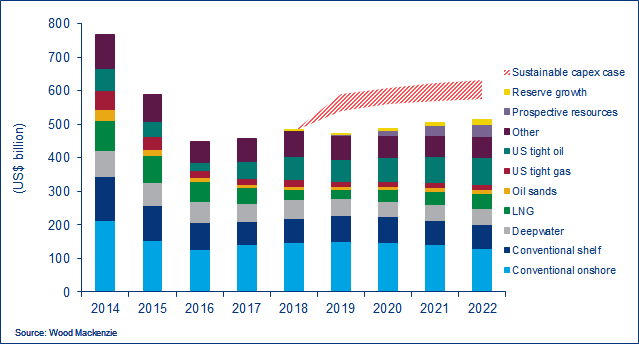 Around 20% higher, or around US$100 billion per year more. That would take annual spend to US$600 billion – what we think is needed to meet future demand for oil and gas through next decade. It’s below pre-downturn spend because we take into account the progress the industry’s made in reducing costs for the present batch of commercial projects.