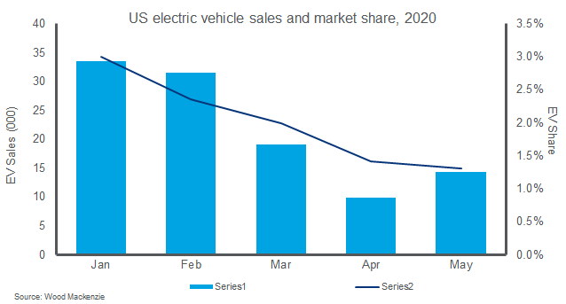 The excitement over Nikola on the Nasdaq made for a sharp contrast with the latest reports on US auto sales this week, which showed electric vehicles face a tough market. In Europe the market share taken by electric and hybrid cars has been rising, but in the US last month it dropped sharply. Electric and plug-in hybrid cars accounted for just 1.3% of US light vehicle sales in May, when they have typically been running in a range of 1.6%-2.4%.