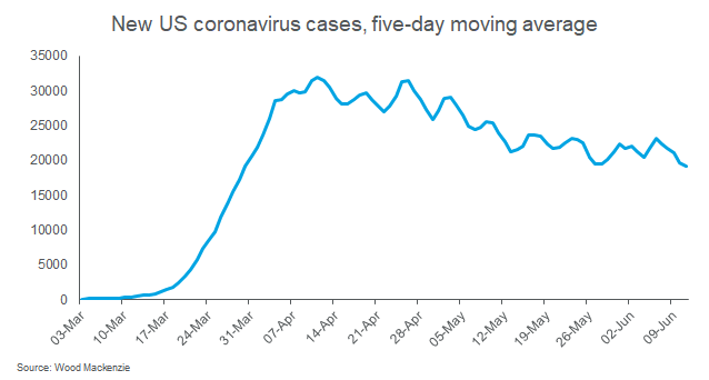 Across the US as a whole, the number of new cases still seems to be on a declining trend. The picture varies widely across states. In New York, which has been the state hit hardest by Covid-19, there were just 674 new coronavirus cases recorded on Wednesday, compared to more than 10,000 a day on several days when the outbreak was at its peak.