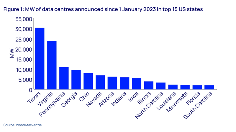 The state government of Texas has passed legislation intended to reduce the risk of blackouts as demand on the ERCOT grid surges. The new law, known as SB6, compels large loads such as data centres to accept mandatory curtailment at times when the reliability of the grid is threatened. Wood Mackenzie data show that Texas is the leading state in the US for planned development of new data centres, fueling concerns about growing strain on the grid.