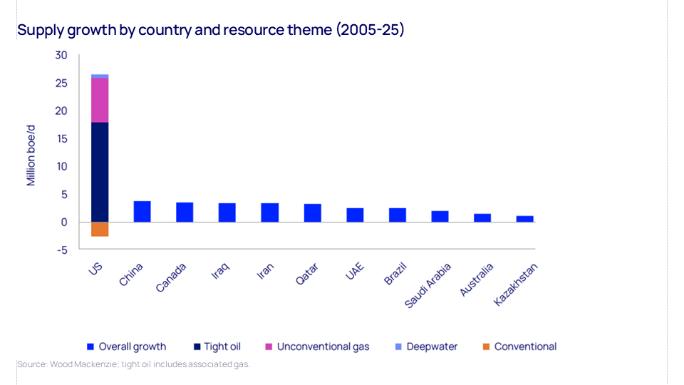 The chart, the first in the report, sets the scene by showing just how far the US has dominated global additions to oil and gas production over the past two decades. It has been one of the most significant changes to the world economy in the 21st century. If other countries can reproduce even a small proportion of the success seen in the US, the rewards could be very large.
