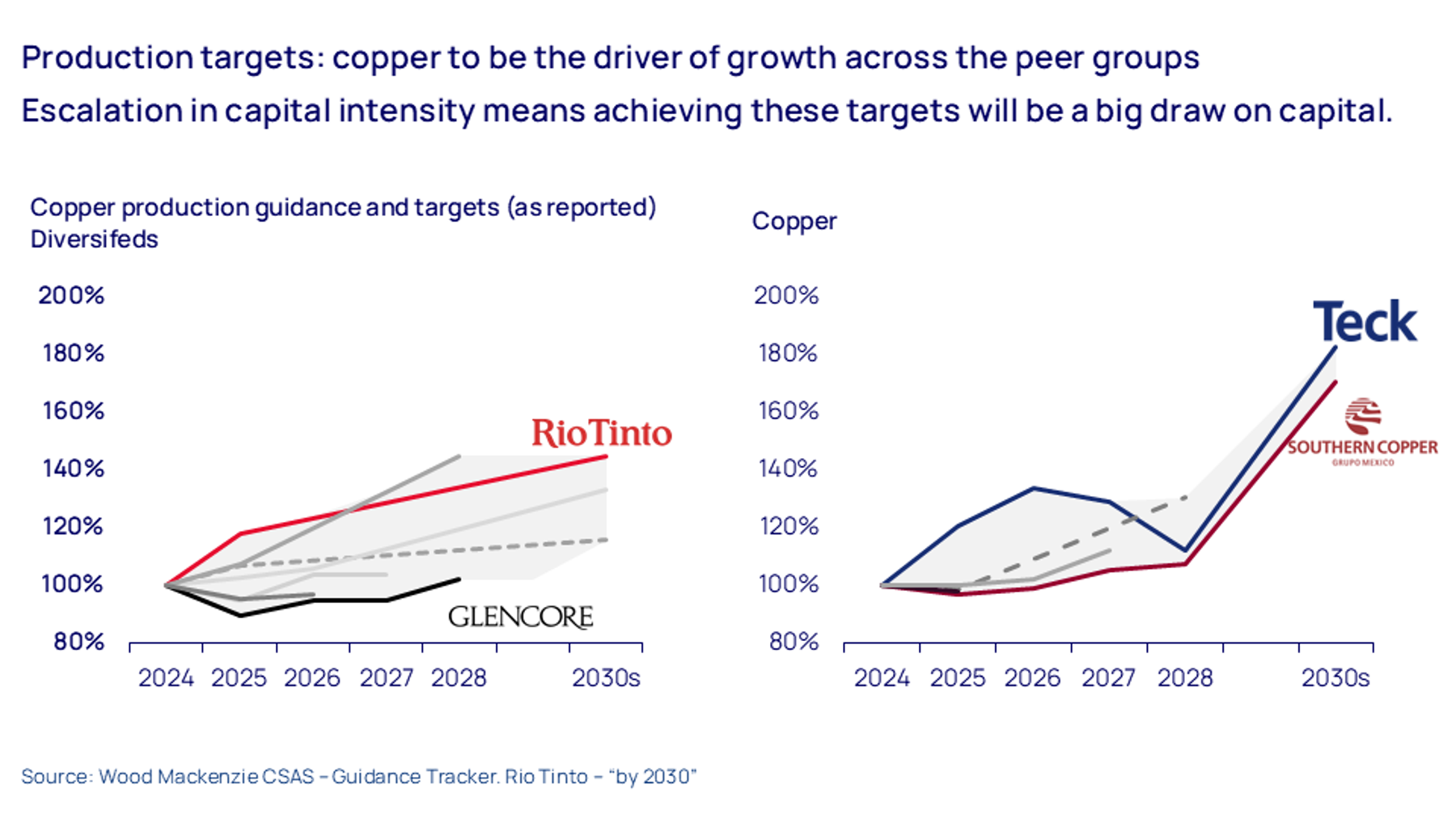 Copper producers are setting their sights on lifting supply in the medium term. Teck and Southern Copper are among the boldest, both aiming to increase production by 70% to 80% by the early 2030s.