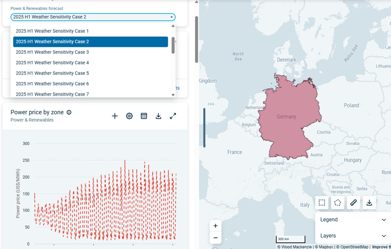 - View captured prices for all technology types across 15 European market (and 29 pricing zones within those) – base case outlooks plus commodity and weather sensitivities