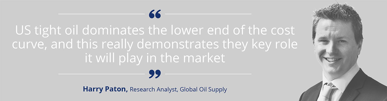 The low end of the global pre-FID cost curve is dominated by the US Lower 48, projected to account for 13 million b/d by 2025. With 9 million b/d breaking even under US$60 per barrel (bbl) and 60% of total development sourced from US tight oil, the Lower 48 will be critical to understanding the future supply curve.