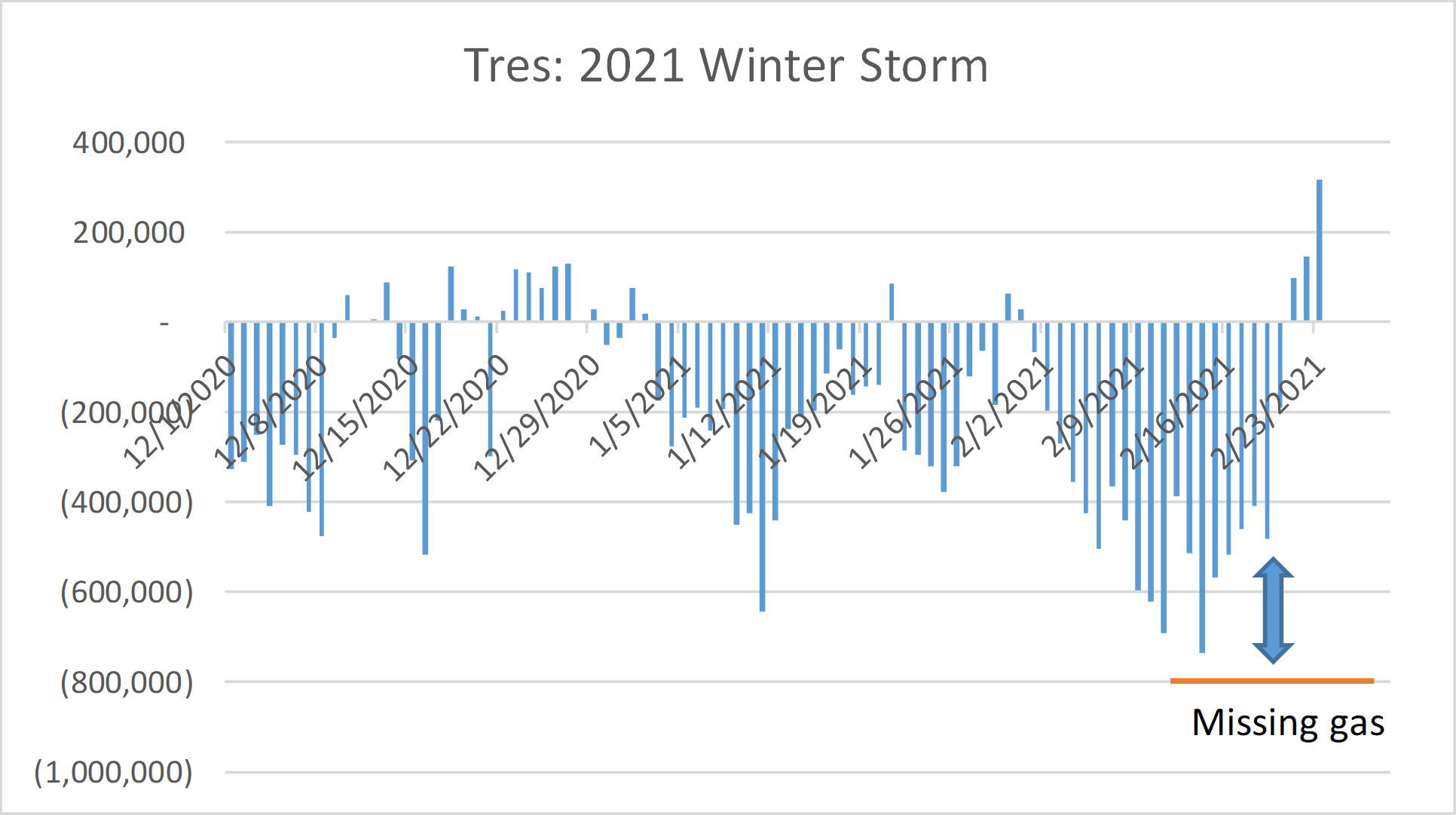 Tres Palacios Gas Storage Facility: withdrawals during 2021 winter storm