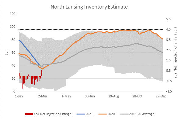 NGPL North Lansing Gas Storage Facility: comparative inventory estimates 2016-2021