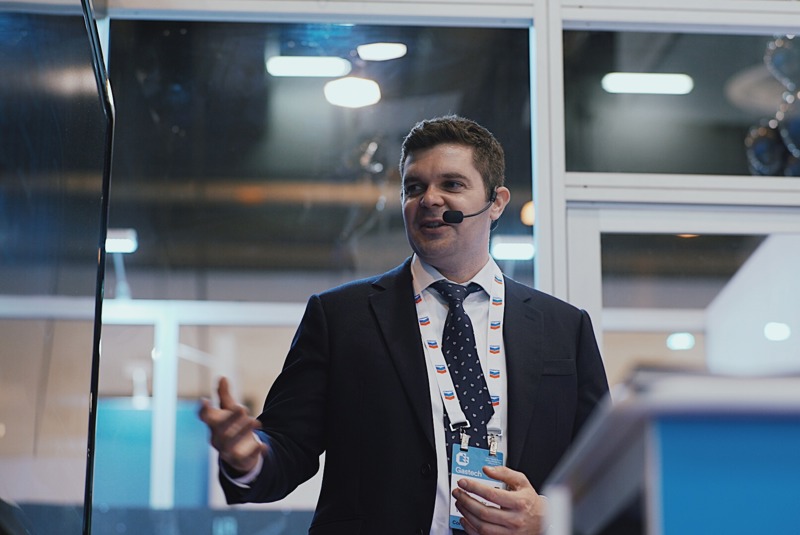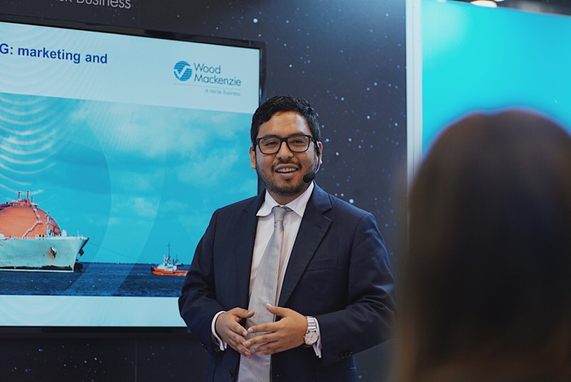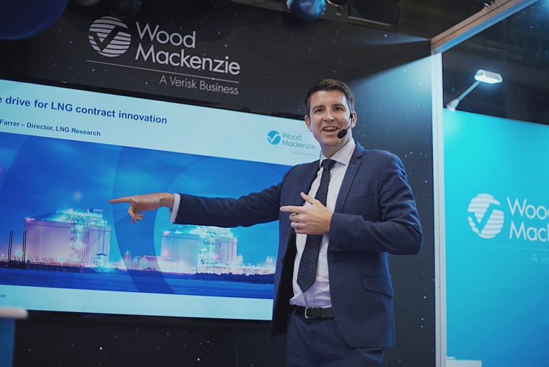Giles Farrer presents on LNG contract innovation at booth K330.