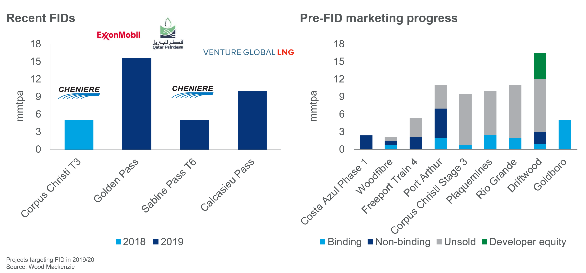 US LNG projects have made significant commercial progress in the last year. There is no longer any question about whether there will be a second wave – it is a reality. Some 30 mmtpa of US LNG has taken FID in 2019, as part of what will be a record year for LNG FIDs globally.