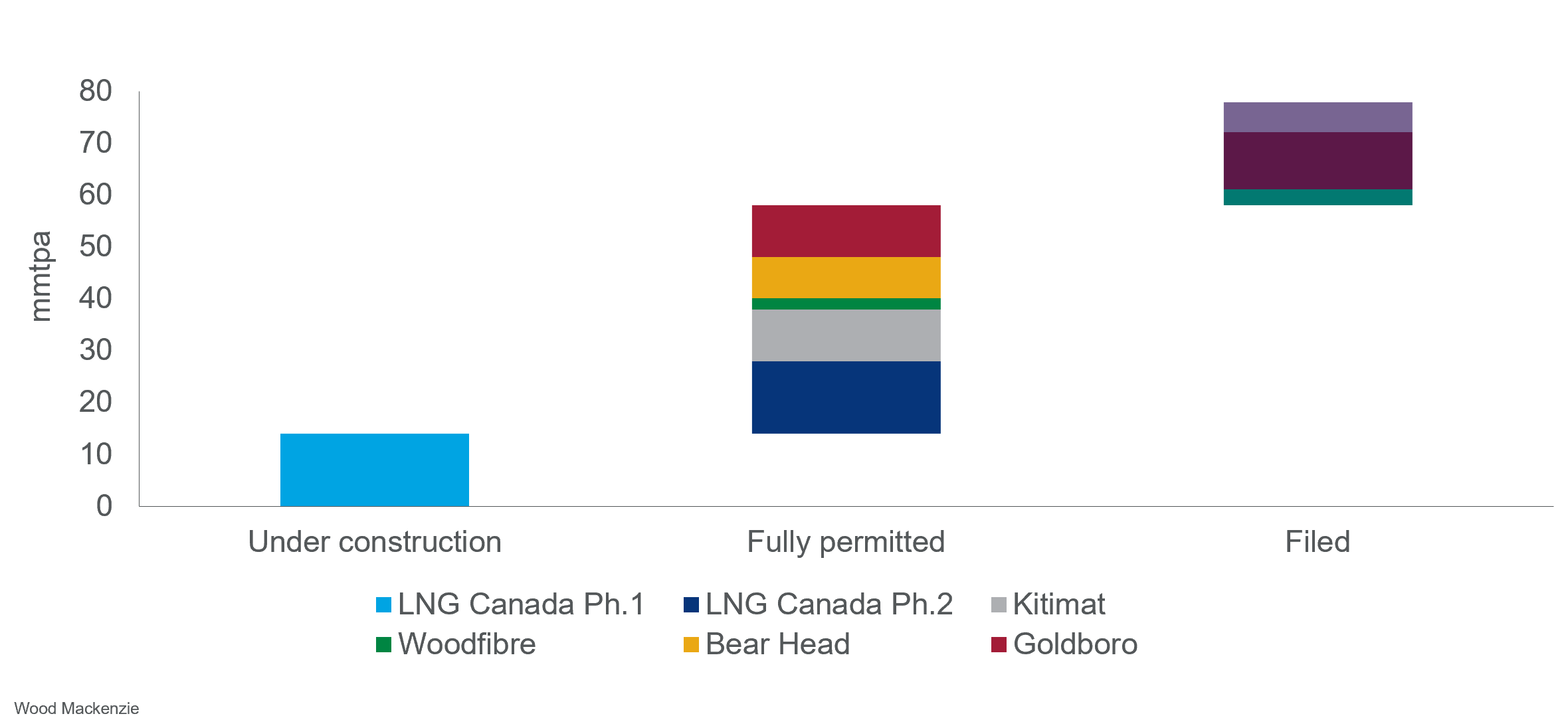 How are the chances of a Canadian FID looking? Woodfibre and Goldboro LNG are the only realistic near-term possible FIDs in Canada. A second phase at LNG Canada could be the next large-scale development in west Canada.