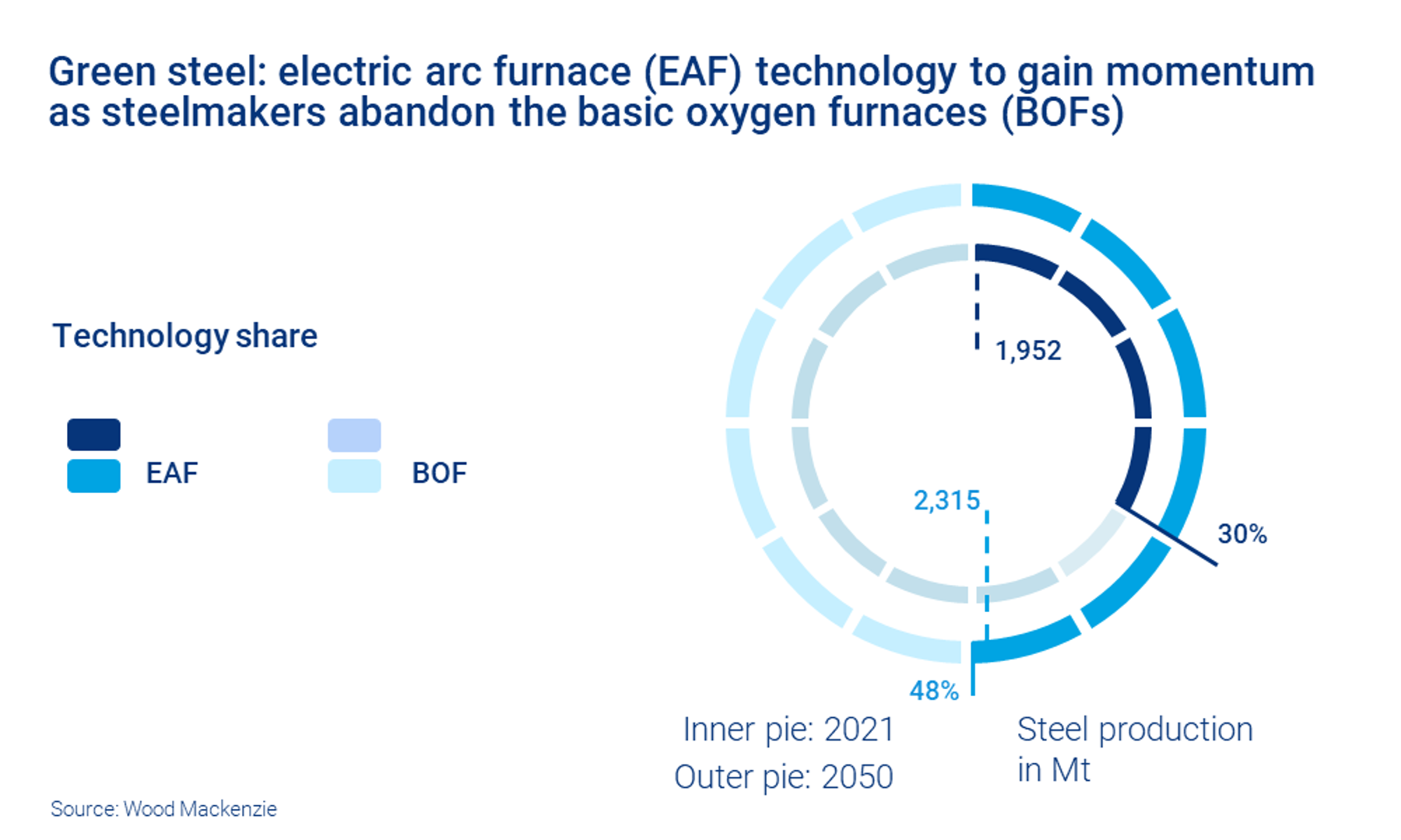 1. Electric arc furnaces using zero-carbon electricity will come to dominate steelmaking