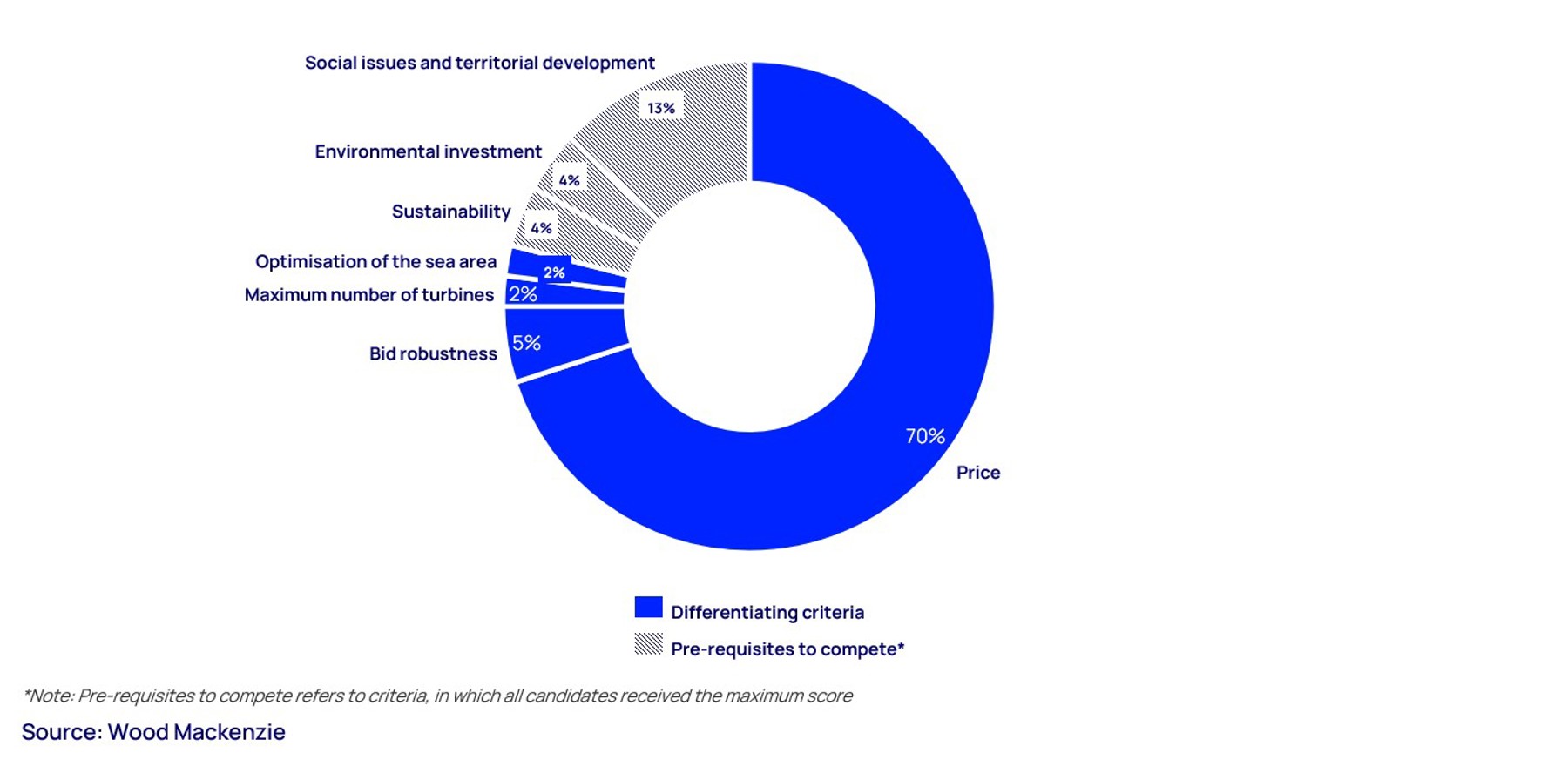 The differentiating factors, however, were price (70%), the robustness of the contractual and financial arrangement (5%), the maximum number of turbines (2%) and optimisation of the sea area (2%).
