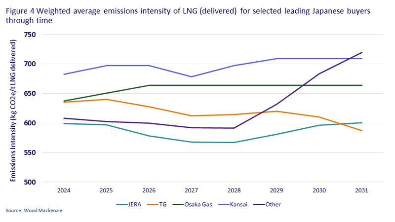 What are the implications for the overall emissions intensity of Japanese LNG?