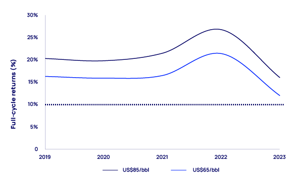 An important caveat on risk: there is no guarantee that any individual explorer will enjoy these positive returns. Long-established industry success rates see only one well in three making a discovery, of which only half typically prove commercial.