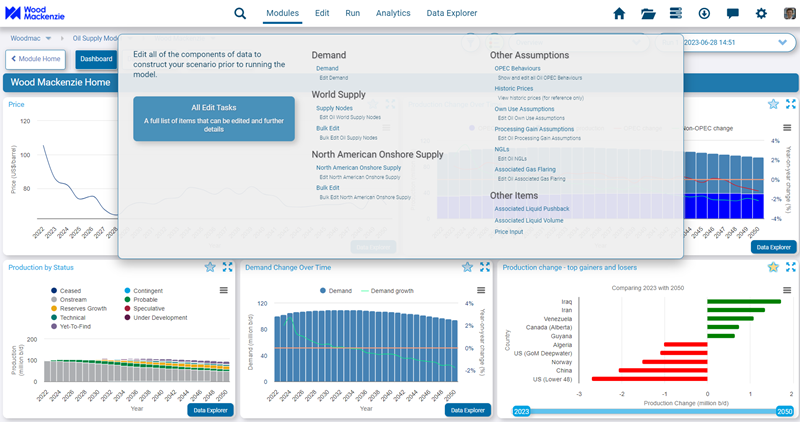 Wood Mackenzie’s supply demand model builds a global oil price and supply outlook based on market fundamentals. This powerful tool enables customers to quantify how events and trends impact the global oil market, empowering them to make informed investment decisions and craft successful commercial strategies.