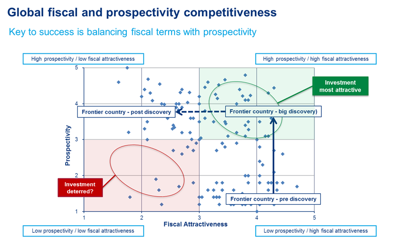 Oil and gas exploration companies are constantly evaluating "where to invest next". They compare what countries have to offer, based on specific investment drivers. The opportunities that tick the most boxes will be prioritised for future spend.