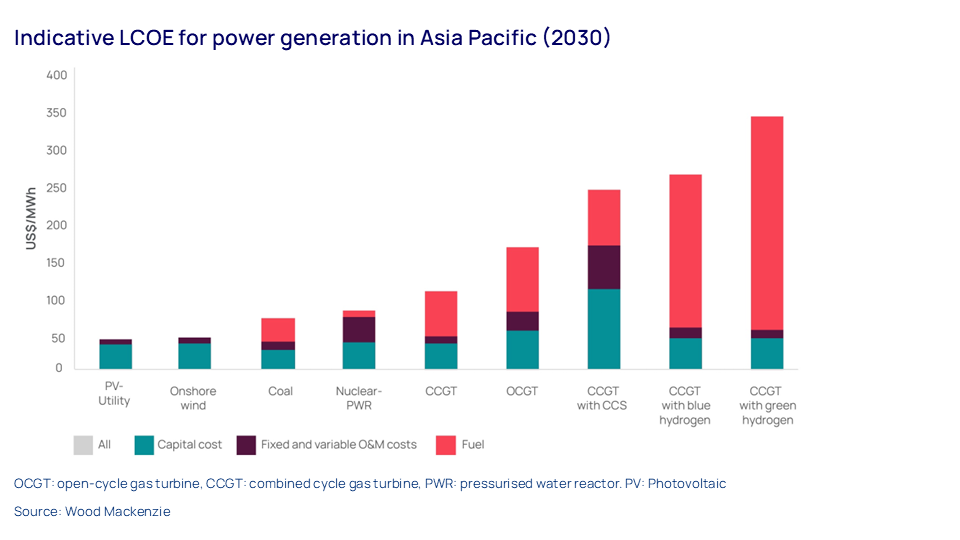 In the key growth markets of Asia, affordability is LNG’s biggest weakness. As this chart shows, LNG is expected to remain among the highest-cost options for Asian power generators: often more expensive than renewables, coal and even nuclear power.