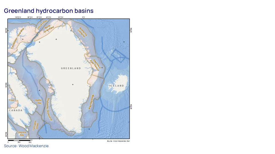 In contrast to Venezuela’s massive – though dilapidated – oil industry, Greenland’s hydrocarbon sector has barely scratched the surface. While the country has high subsurface potential and is an underexplored frontier area with appropriately attractive fiscal terms, its Arctic location poses extreme challenges for explorers. To date, just 25 exploration wells have been drilled, predominantly in Greenland’s Southwest basin. Each was unsuccessful. The most promising potential for oil and gas lies in the far less accessible offshore east. The US Geological Survey estimates around 31 billion boe of technically recoverable resources across eastern Greenland, though without any modern seismic data this appears highly optimistic.