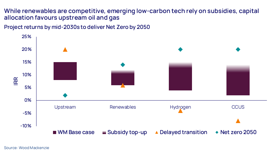 First, current project economics heavily favour investment in upstream over low carbon (see chart)