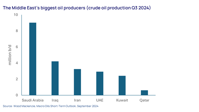 Of the big producing countries in the region, Iran – which produces 3.2 million b/d of crude oil of which about 1.4 million b/d is exported – is the most vulnerable to disruption. Israel has reportedly threatened to attack its energy infrastructure. In a wider or prolonged conflict, Iraq – 4.2 million b/d crude and 3.3 million b/d of crude exports – could also be at risk since it is home to Iran-based proxy groups. Iranian retaliation on US energy operations in the region adds to the potential risks to supply disruption.