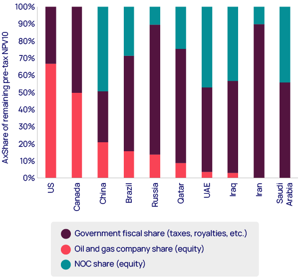 Even accounting for high royalty rates on core shale acreage onshore, producing companies still retain more than 65% of remaining NPV10 (net present value discounted at 10% per annum). This huge value retention compared with other countries with more demanding fiscal systems and/or significant national oil company (NOC) participation helps keep US upstream cash reinvestment uniquely high. It also helped to attract massive pools of low-cost capital in shale’s first decade.