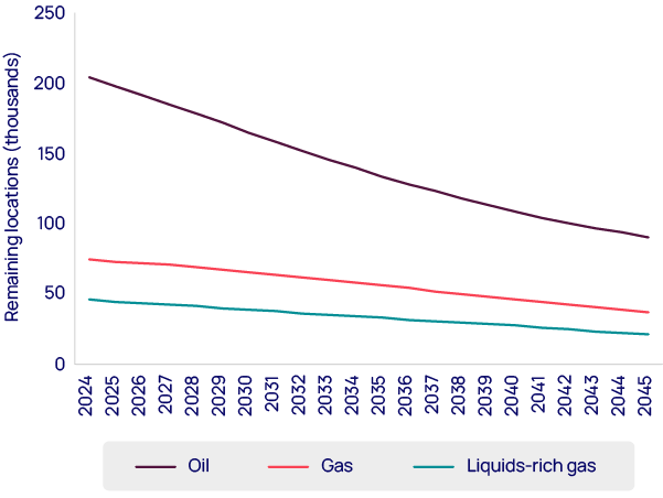 The pace at which companies are drilling through their inventory is slower for gas than for oil. However, as demand for gas ratchets up, identifying additional locations for future production will become increasingly important.