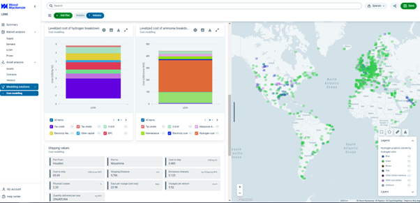Whether it’s comprehensive cost analysis across the full hydrogen value chain, from point of production through to the cost of conversion, shipping, and reconversion or accurate, granular asset valuations, Lens Hydrogen delivers analysis across a complex hydrogen value chain.