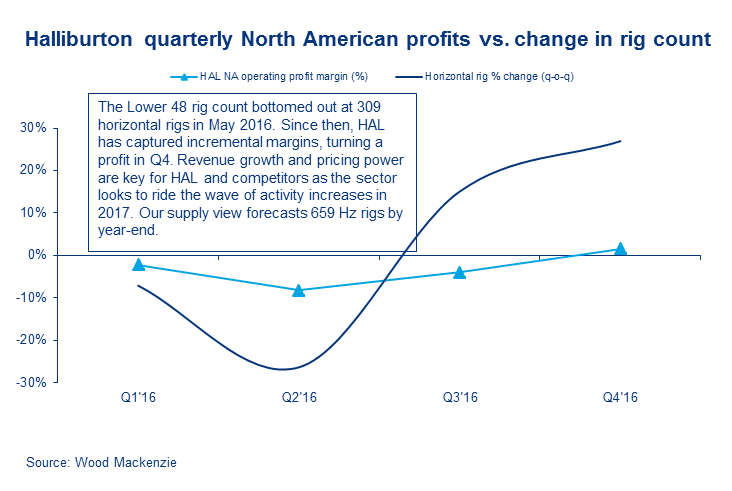 Oilfield service giants Schlumberger and Halliburton reported Q4 earnings recently, closing off what some have described as the worst year for the service sector in decades. Both companies saw 2016 revenue decline by about a third, although Q4 showed some signs of growth. In our latest report, our analysts discuss whether the companies have turned a corner and what's in store in North America and internationally.