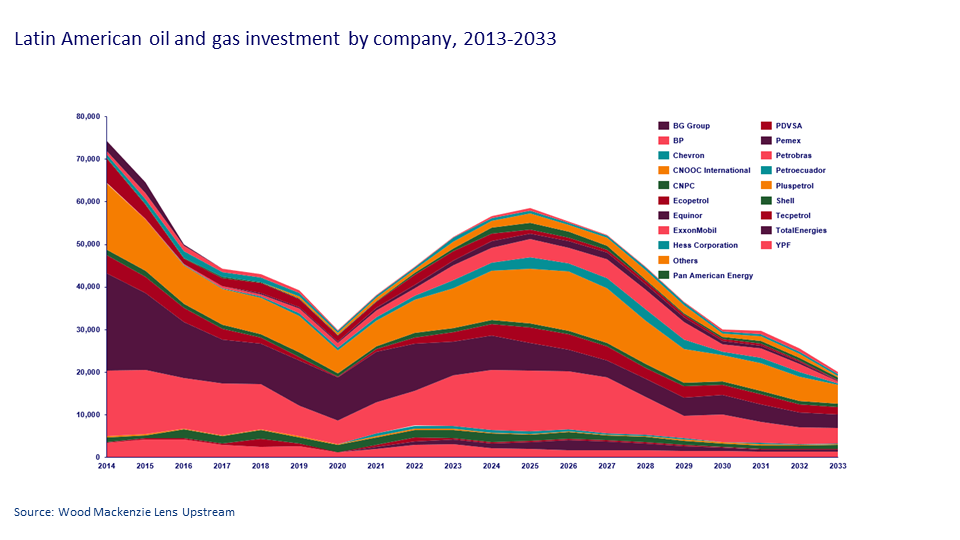 We expect strong upstream growth in Latin America this decade, with deepwater and unconventional oil and gas offsetting the decline from mature conventional plays.