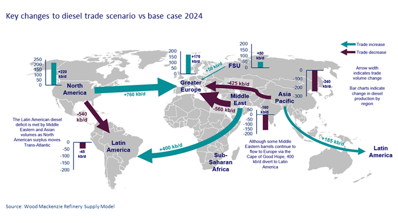We expect these trade flows to continue to evolve, with US distillates increasingly clearing to Europe, while Middle East products will redirect to the Americas and Asia.