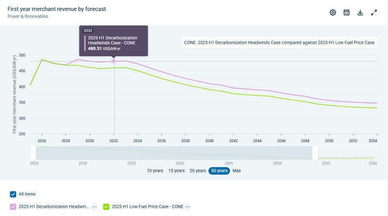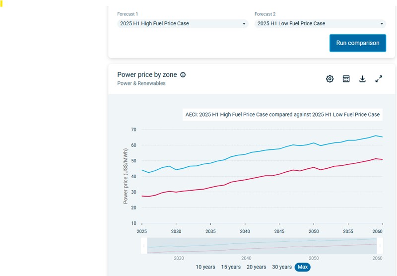 Build a full picture and make confident decisions by comparing long-term outlooks, now including price data, from one tab in Lens Power and Renewables.