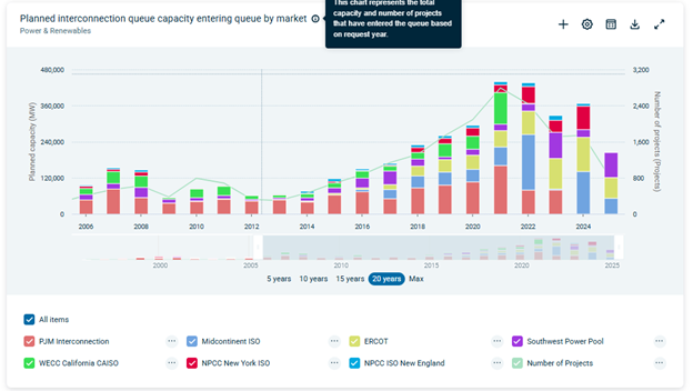 Connect the dots between interconnection queue challenges and market fundamentals—combining queue analytics with expert price and supply outlooks to reveal how grid access shapes energy market trends.