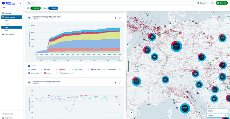 - Search, filter, and map Gas & LNG assets on a detailed mapping interface.
