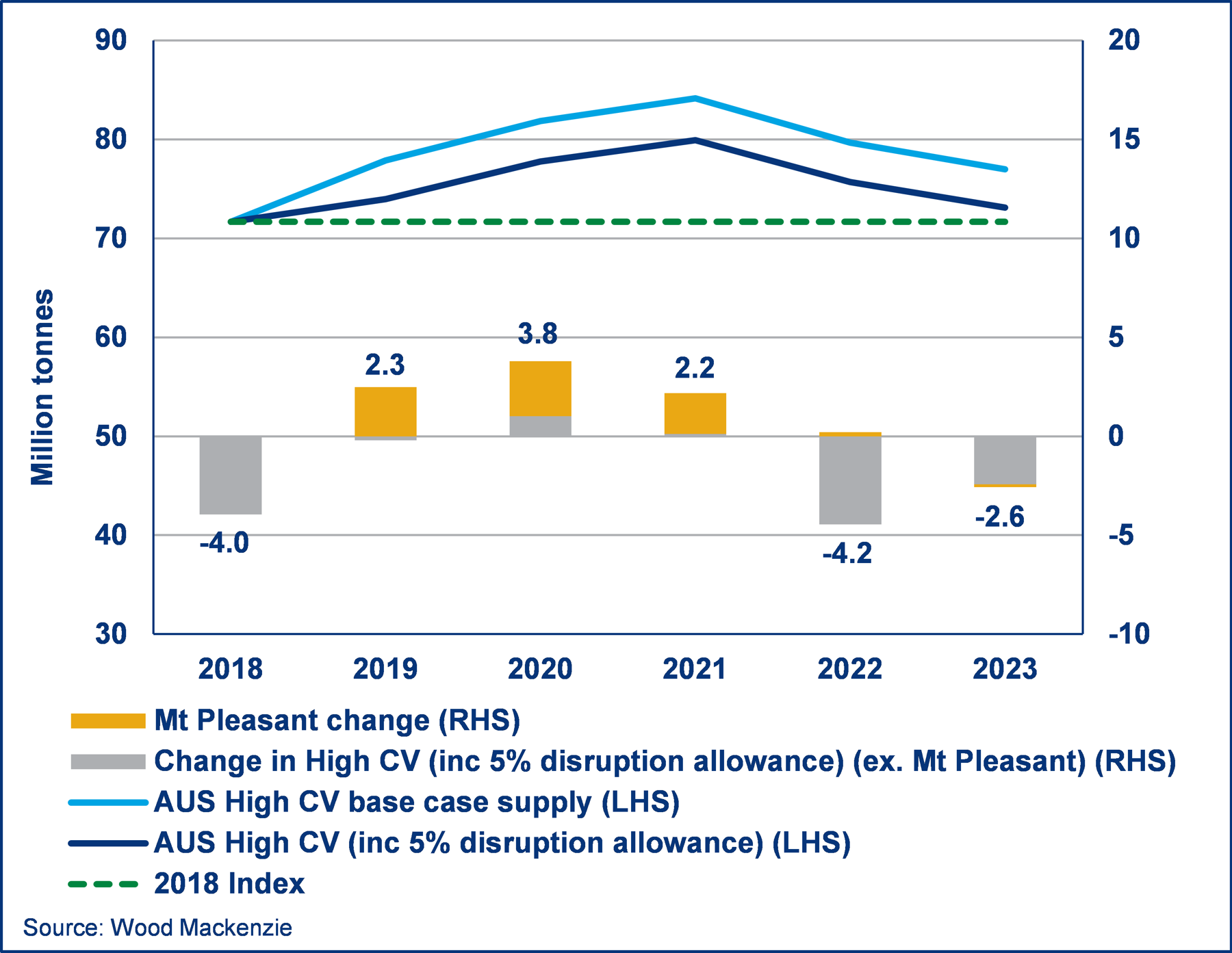 The ramp up of MACH Energy's Mt Pleasant coal mine in New South Wales caters for nearly all the change, with high CV supply (ex. Mt Pleasant) essentially flat over 2019-21.