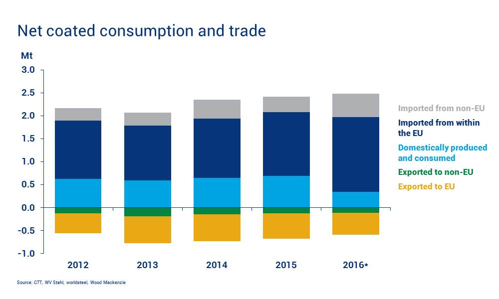 The UK has adequate coating line capacity to support domestic demand, although utilisation rates are currently low, running at 33%. However, the 1.2 Mt of capacity, idled because it is uneconomic, is unlikely to restart without some level of government subsidy or regulations designed to reduce operating costs.