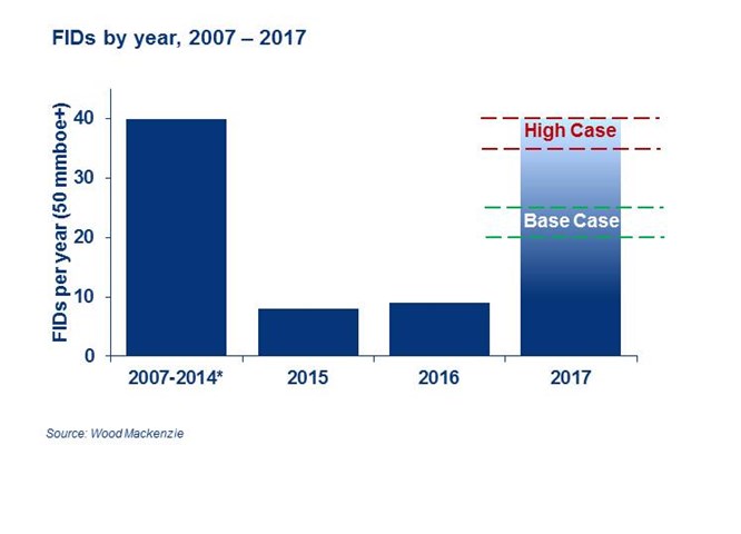 The industry has selected the best projects to optimise and take forward. In 2017 it will have to turn its attention towards optimising the next wave of developments to get them sanction-ready. Governments will also have a role to play in improving fiscal terms to attract scarce E&P capital.