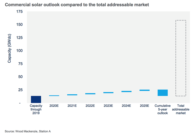 Historically, measuring commercial solar potential has been challenging due to a lack of reliable data. By combining our project-level solar data with Station A’s building-level data*, we were able to get an accurate bottom-up view of this market for the very first time.