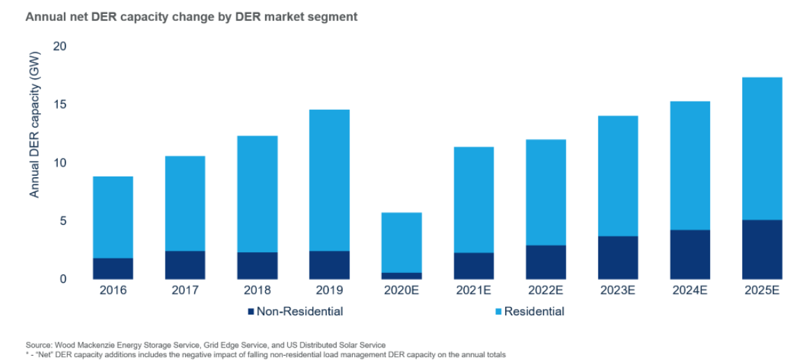 The COVID-19 pandemic and coming recession will have a very significant impact across DER markets in the United States, with annual DER capacity additions falling by 61 percent in 2020.