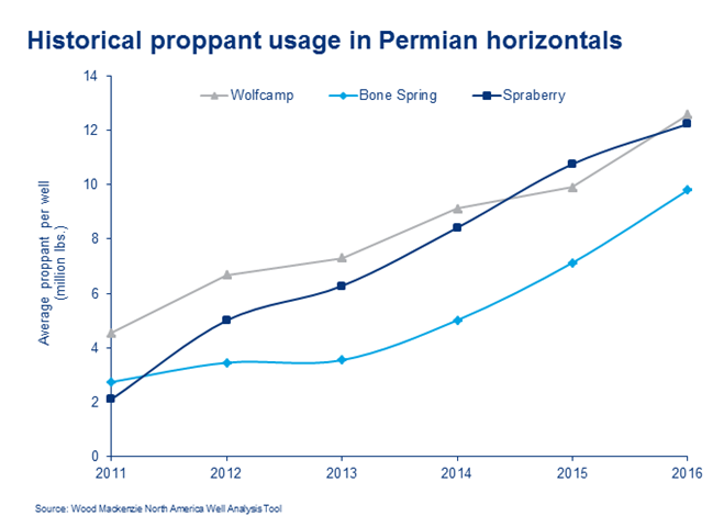 Through the acquisition, Hi-Crush will gain 55 million tons of sand reserves, with the ability to process three million tons per year. Extrapolating 2016 trends in proppant loading, Hi-Crush has the capacity to service 500 Permian horizontal wells in 2017, or 17% of the projected Permian demand.