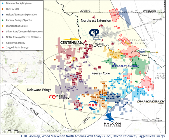 Acreage position may be one of the most significant factors leading to the lower-than-expected IPO. Using a simple market cap to net acreage metric to compare acreage valuations, Jagged Peak is priced at US$46,000/acre (adjusted for flowing production), comparable to Permian outperformers RSPP and FANG. While these companies have portfolios that are more de-risked and contain a more robust production profile, Jagged Peak has noticeable gaps in its acreage position, with the Pecos acreage specifically less attractive than northern Ward County.