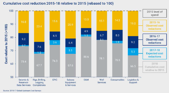 Overall, the industry has achieved material cost reductions in the region of 30% since the oil price crash. However, we're seeing sizable variations in the level of cuts achieved, suggesting there is still room for improvement moving forward.