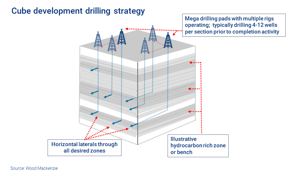 By 2025 the Majors will make up 20% of Permian production. With them comes the economies of scale, infrastructure and logistics to move the Permian to cube development – an approach that focuses on longer-term resource management and stable productivity.