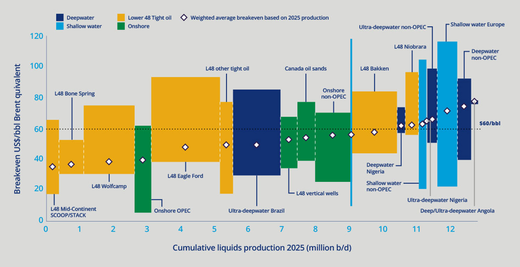 Over half of all new 2025 production breaks even at US$35-US$55/bbl